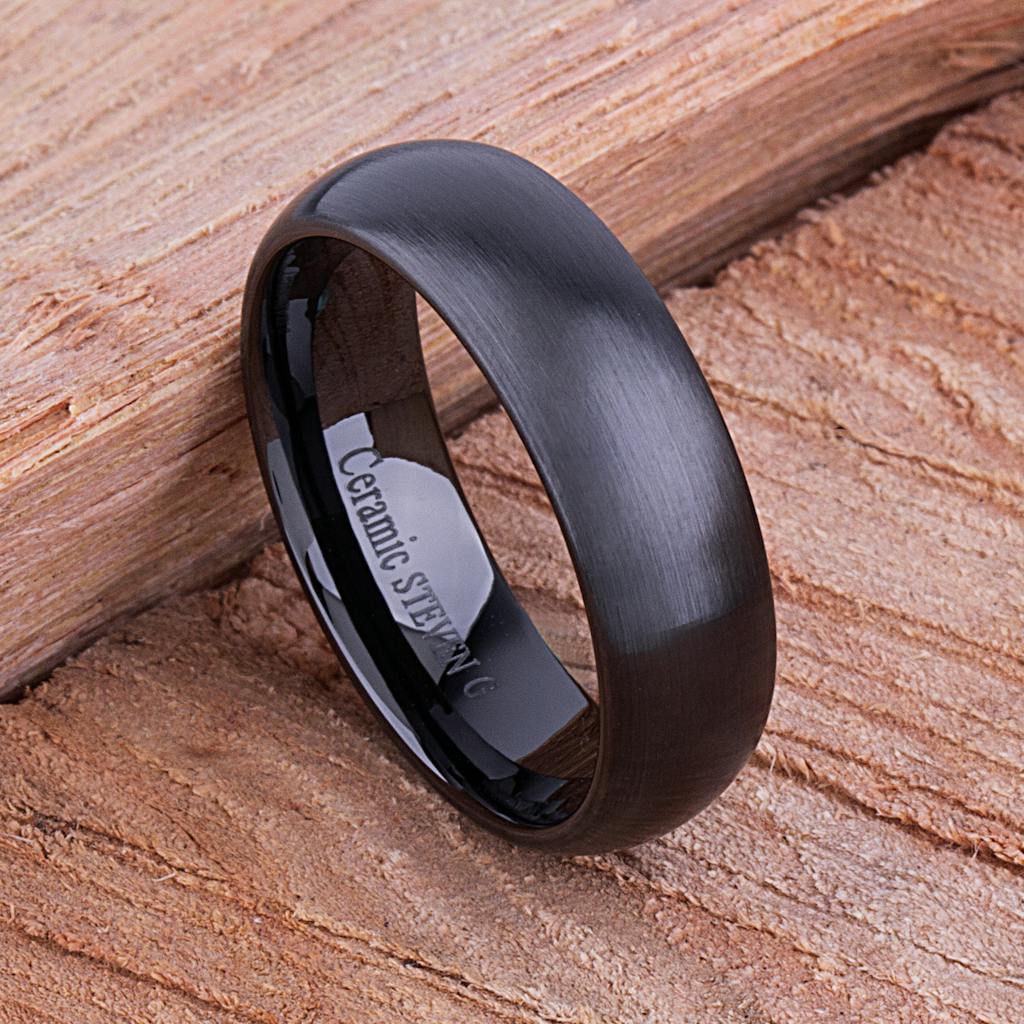 Black Hi-Tech Ceramic Ring Style Wedding Engagement Band 7mm Wide Domed Shaped Light Brush Finish Comfort Fit Durable