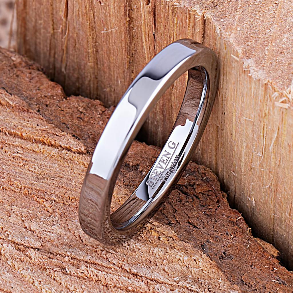 This is your traditional style tungsten wedding band. No fancy shapes or colors. It just does what is supposed to do - look good on your finger! It is popular with both men and woman. You can't go wrong with an attractive band like this.