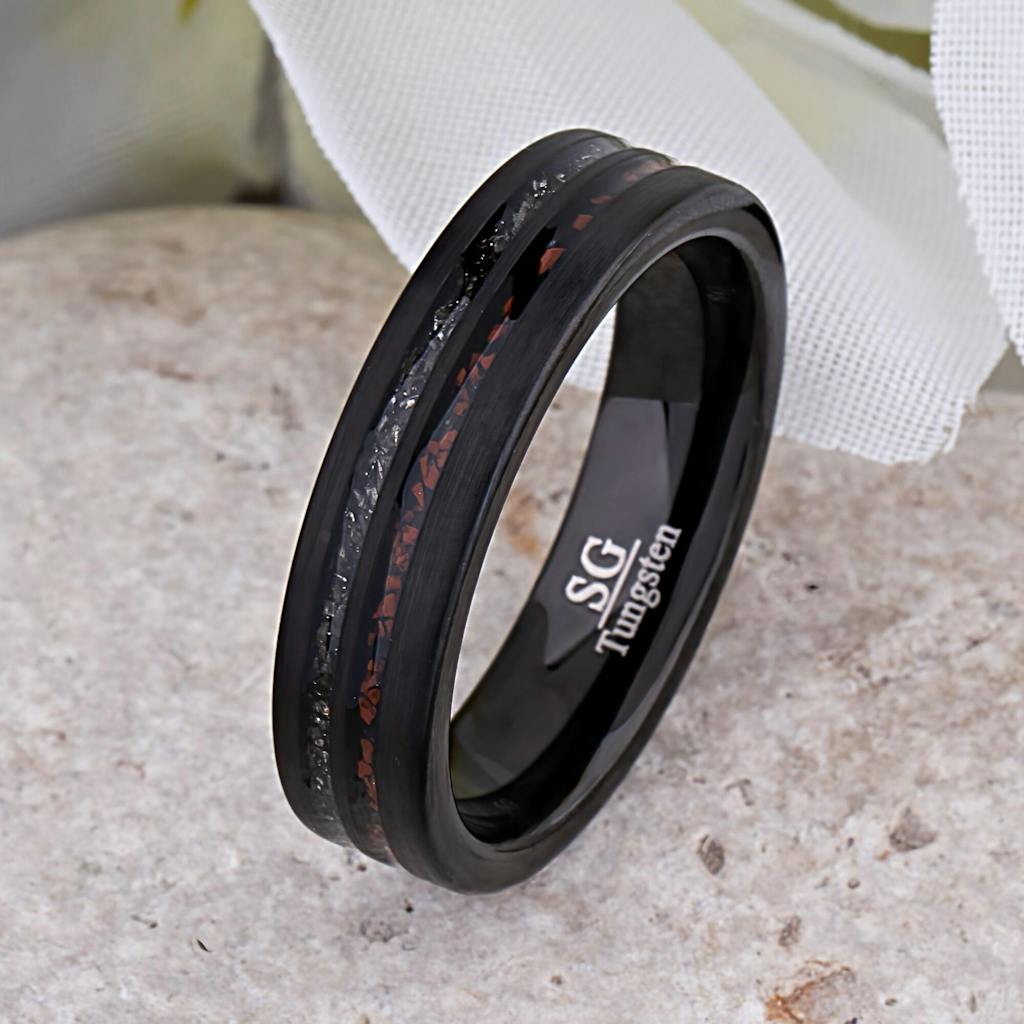 Dinosaur Bone and Meteorite Black Tungsten Band - 6mm Width - TCR248