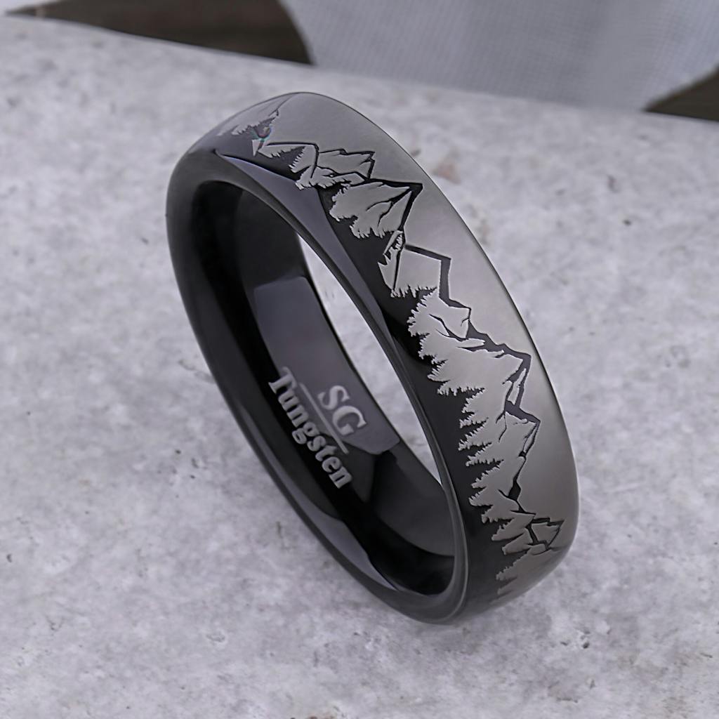 Mountain Design Black Tungsten Nature Wedding Ring - 6mm Width - TCR244