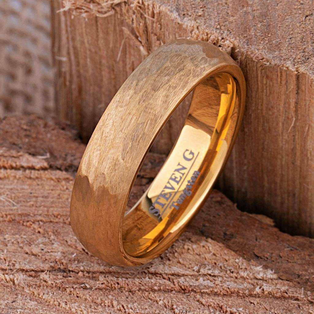 Hammered Yellow Gold Tungsten Ring - 4mm Width