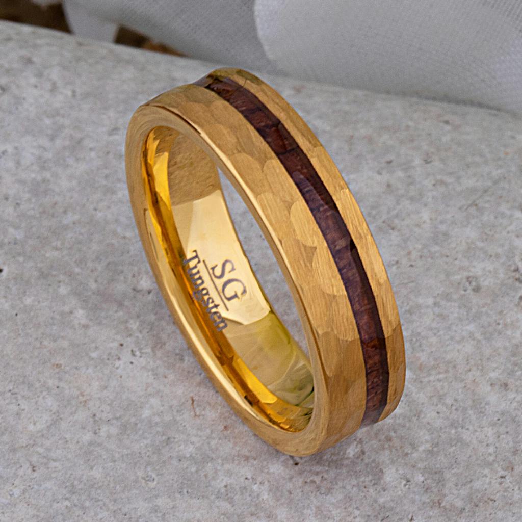 Do you want a ring that is unique, stylish, and will stand the test of time? Look no further than this yellow gold tungsten wedding band. The Padauk Wood inlay adds a touch of nature and refinement, while the yellow color gives it a modern edge. This ring is sure to turn heads and start conversations. So why wait any longer? Order your Tungsten Ring today!