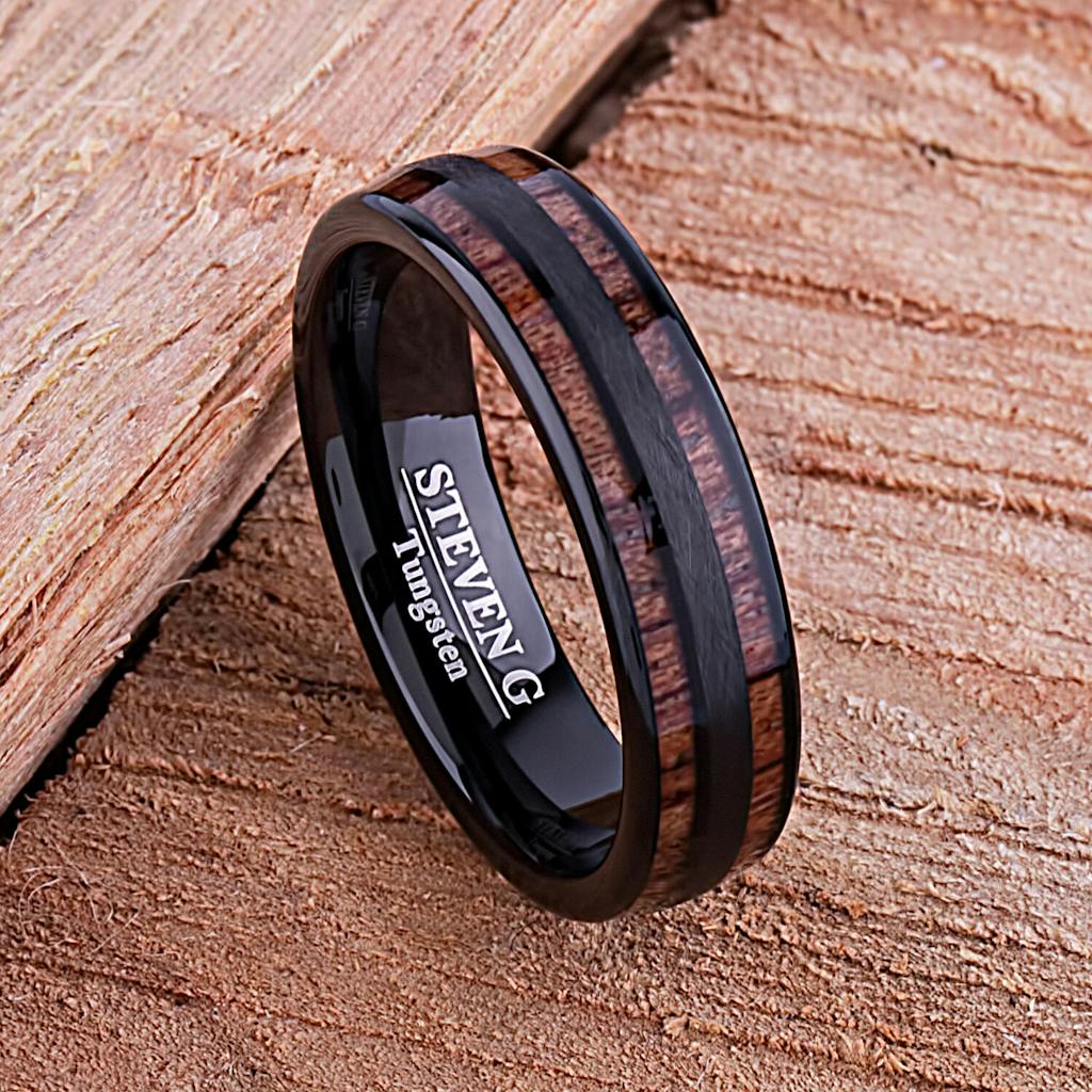 Sometimes combining two elements together is better than just one. In this ring we have tungsten and Hawaiian Koa Wood in parallel lines to create an attractive look for any man. Any man would be happy with a noble looking ring like this.