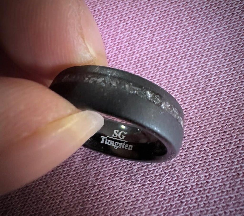 Ring absolutely meets my expectations. Dino and meteorite inlay and engraving looks great. Great gift!