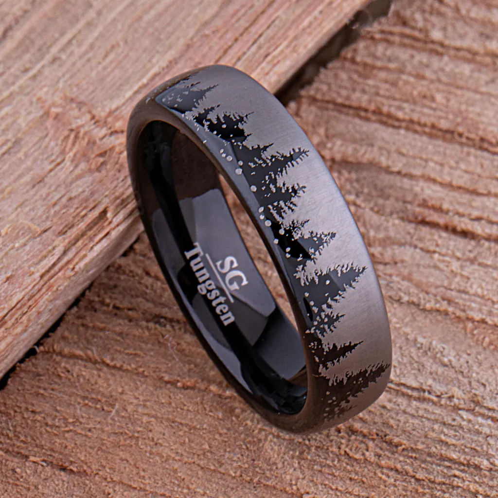 I love it. Got for our 40th aniversary!\nMy husband got a ring with redwood and mountains, I got trees black and silver so I can be yen and yang. He's my mountain and I'm his tree. LOL\nBut hey.\nLove the ring, comfortable and the box was great.\nThank you