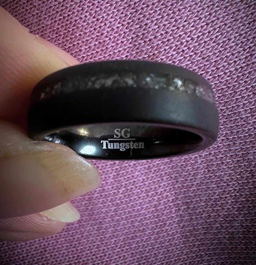 This tungsten ring is the perfect choice for couples who want a unique and stylish wedding ring. The meteorite inlay has a subtle appearance yet eye-catching and sparkles when it reflects light. The tungsten band is both strong and durable. This ring will stand the test of time and symbolize your love for each other for years to come. Order one today!