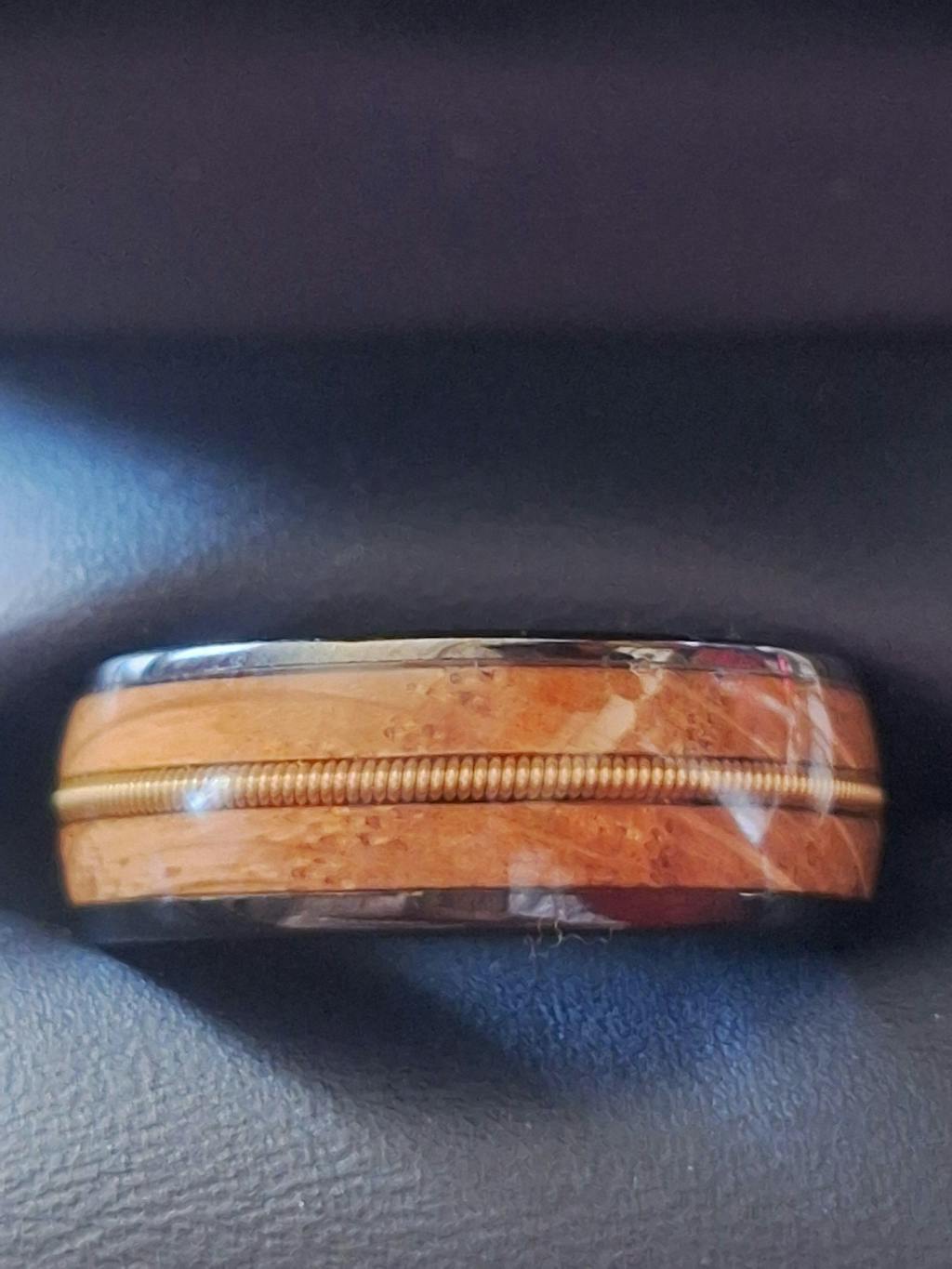 I bought the Tenessee Whiskey Barrel and Guitar string Tungsten ring for my fiancee as his wedding band and it is absolutely stunning. Shipping was very quick, the sizing is perfect, and the ring is gorgeous. I was slightly skeptical of buying something online but it was the only place that had this unique concept that he wanted. For the price, it's beyond what I could have expected. The packaging and thank you gift were also very nice touches. We are very pleased with our purchase. Highly recommend!!