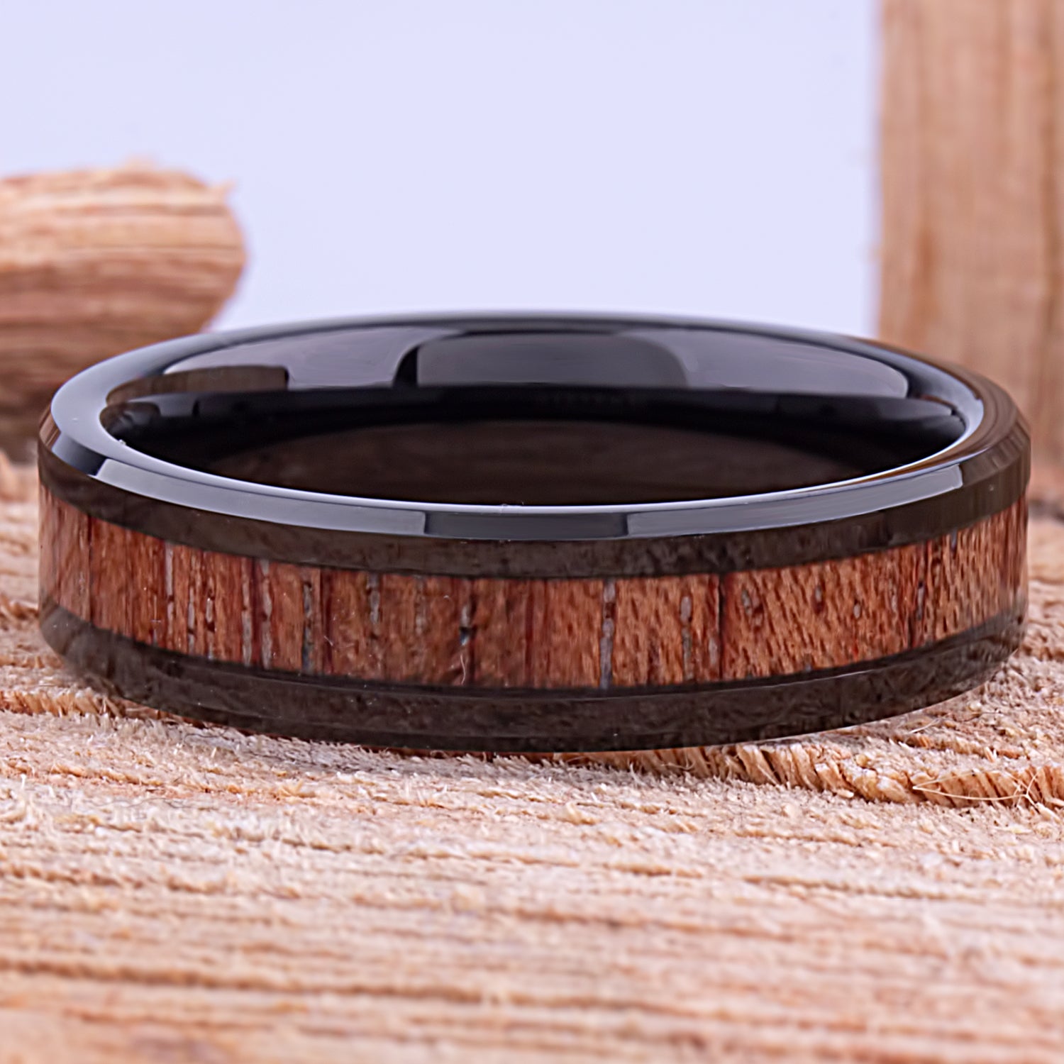 This is one of more popular rings. Customers just love the way the Padauk Wood center inlay stands out from the black IP sides of the ring. The wood's wider width shows well and makes this ring a rare find. Wear this ring day or night, at home or to a party, in the office or on the road - it's a real attention grabber.